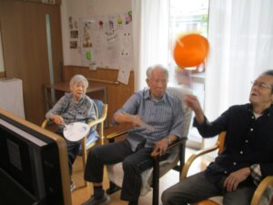 AMは風船バレー・集団体操等笑顔いっぱい過ごしました。