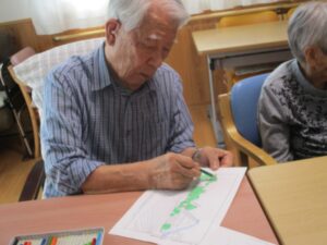 塗り絵に集中されとても素敵な作品を仕上げられていた方もありました。