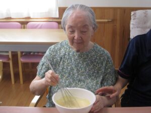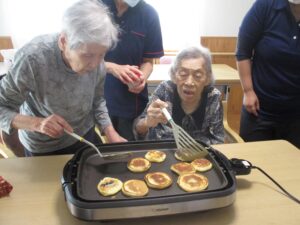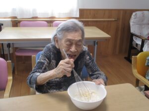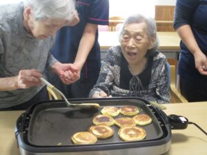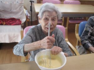 わいわいルーム どらやき 2025-10-09スクールzouchi 認知症対応型通所介護 わいわいルーム 令和7年10月8日(木) 本日は予定にはありませんでしたが 「どらやき」作りを実施しました。 皆様協力してお話しながら楽しくご参加頂きました。 交流もあり笑顔いっぱいのおやつタイムになりました。 その他洗濯物のお手伝いや初食器片づけのお手伝い等 いつもありがとうございます。 集団体操にも熱心に参加されました。 リハビリも頑張っておられました。 本日も皆様と交流も多く笑顔も多い一日でした。 ありがとうございました。